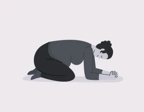 Садимся тазом на пятки. Даже если таз не касается ног – не страшно, можно что-то подстелить (плед, подушку). Колени разводим в стороны максимально широко. Руки опускаем на предплечья. Внизу расслабляемся. Здесь происходит глубокая растяжка тазобедренных суставов и всего, что около них. Для беременных это именно то, что доктор прописал.