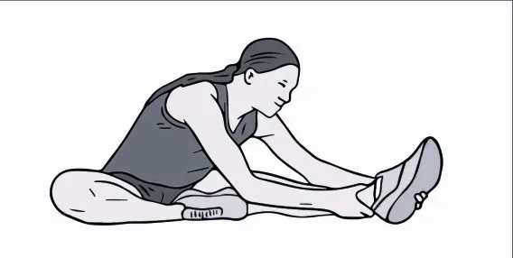 Сверху всё потянули, самое время переходить к ногам. Из предыдущего положения – “сукхасаны”, очень удобно выйти в “поочередный наклон к прямым ногам”. Итак, одну ногу оставим согнутой, другую – выпрямим. Выполним классический наклон, такой знакомый нам со школьной скамьи: носок тянем “на себя”, колено выпрямляем, корпусом наклоняемся вниз. Задерживаемся на 30-60 секунд, затем меняем ноги.