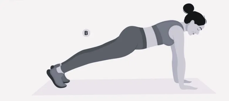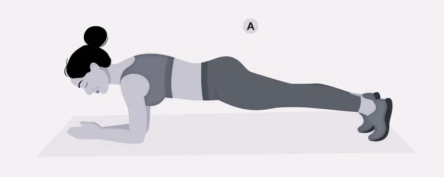 Исходное положение: планка на предплечьях. Из этого положения выходим в планку на вытянутых руках. Затем – снова на предплечья. Движения плавные, неспешные. Чередуем положения без остановки 12-20 раз. Можно за 2-3 подхода (в зависимости от уровня подготовки).
