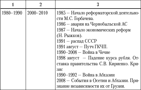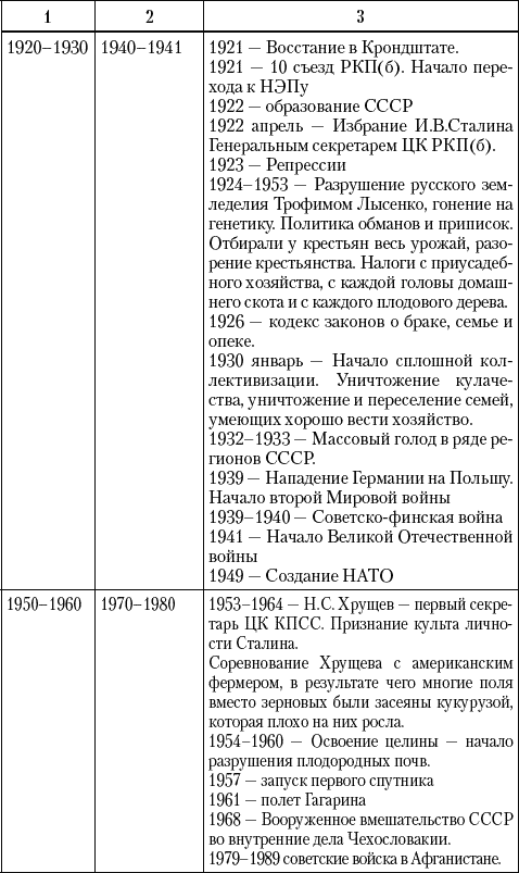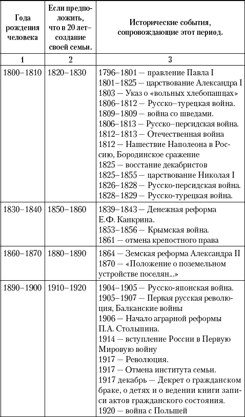 Если, в среднем, считать, что поколения сменяются через тридцать лет, то на примере дат исторических событий, приведенных в таблице, можно определить некую последовательность: