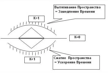 Выпуклость, выгнутость локализованной зоны Пространства характеризуется коэффициентами K>1. В выгнутых, выпуклых зонах Пространства происходит растяжение, замедление Времени.