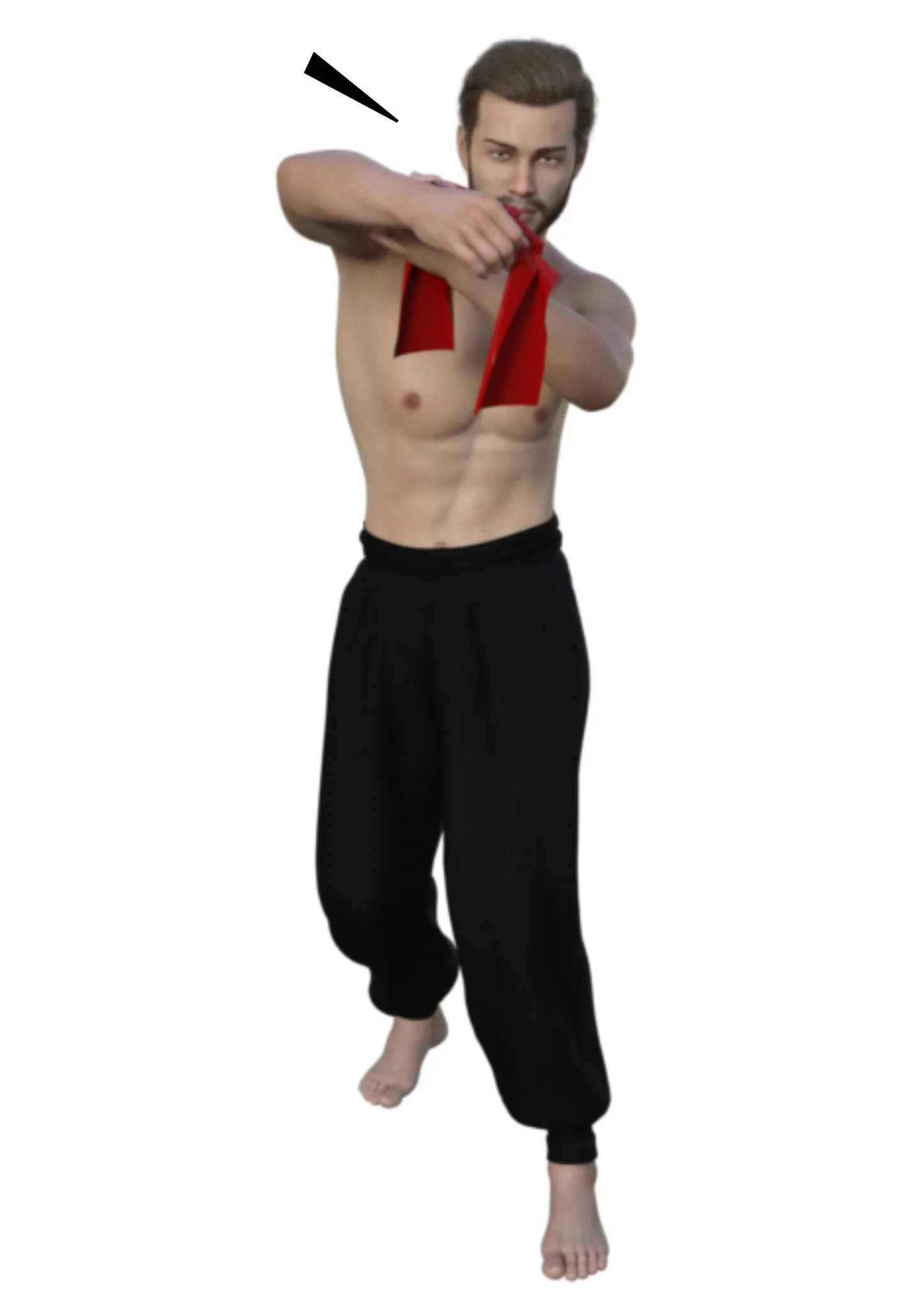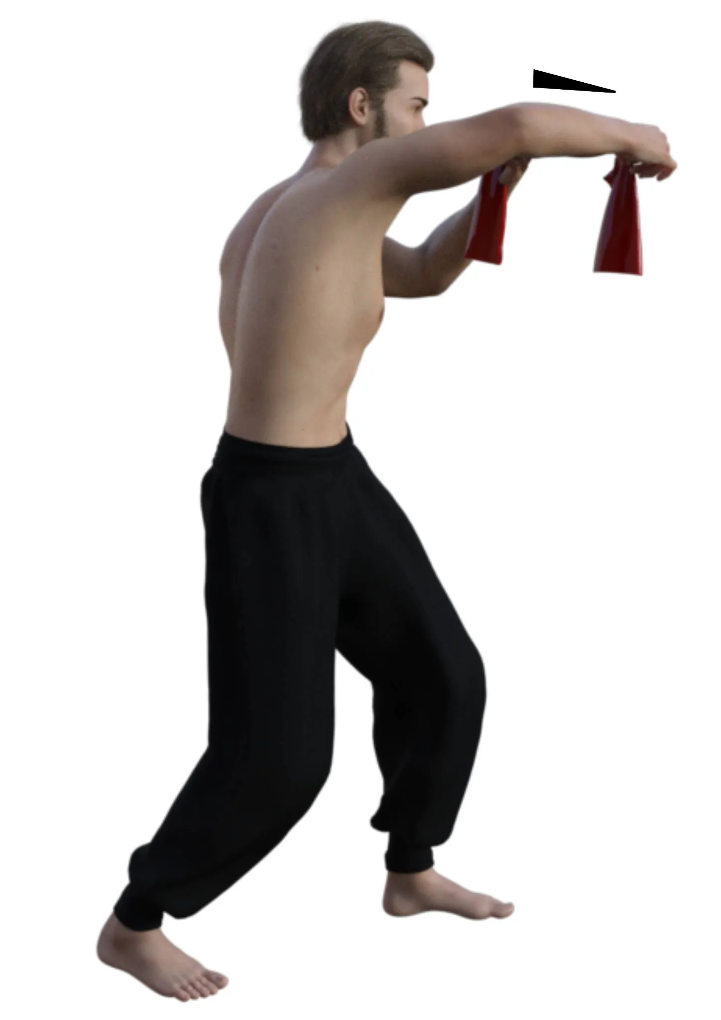 В наибольшей степени в этом движении напрягаются трицепс правой руки и бицепс левой. Но следует также прочувствовать напряжение правой ноги, груди, пресса и косых мышц, скручивающих тело влево. И нужно сильно сжать пальцы правой руки.