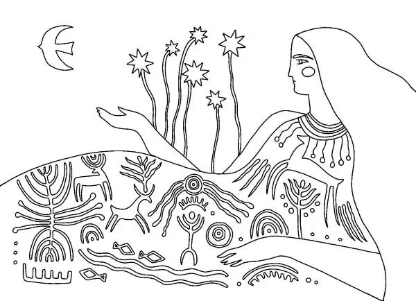 Идем, за руку друг друга ведем, старшая младшую ведет, и младшая за старшей идет. Идем хороводом под бубен, становимся и младшей, и старшей, какими были и будем. Век Женщины начинается с младенчества и идет путем до самой смерти. Ты, Женщина, есть праматерь, есть сестра и дочь, мать и бабушка, ты есть прабабка, ты одна из сорока сороков, которые встанут за тобой.