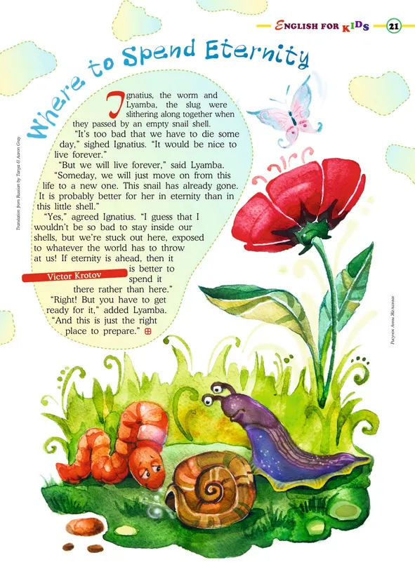 – Так мы и живём вечно, – сказал Лямба. – Просто перейдём когда-нибудь из этой жизни в другую. Вот улитка и перешла. Наверное, ей там лучше, чем в раковине.