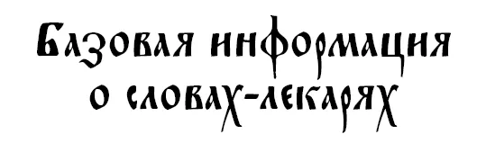 В данной главе представлена такая ознакомительная информация. Если вам что-то покажется сложным и непонятным – пусть вас это не пугает. Пока вам не нужно ничего делать – просто ознакомьтесь с нижеследующей таблицей, посмотрите на начертание каждого слова-лекаря, прочитайте его название, узнайте, каково его значение и познакомьтесь с характером его действия. Вы можете уже сейчас примерно определиться, для решения каких проблем и задач вам может понадобиться то или иное слово-лекарь.