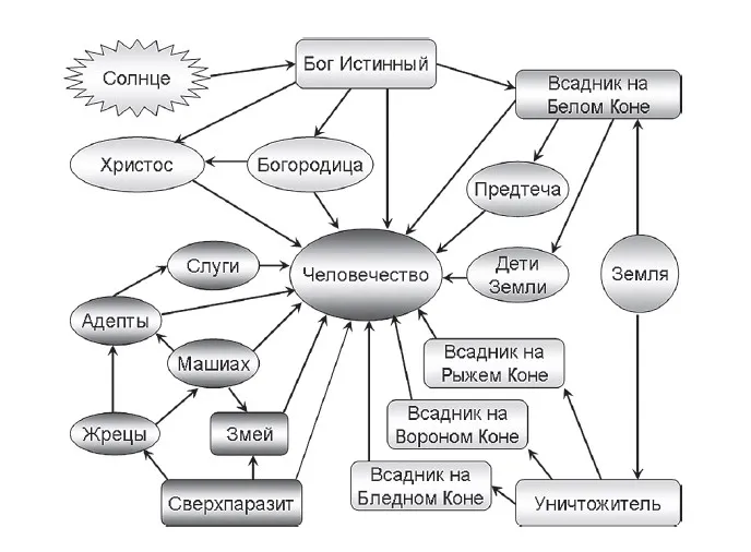 Состав основных «богоподобных» сил был осознан еще в 2008 году, когда утверждаемые религией образы удалось сопоставить с их информационной природой и материальными носителями. В работе «Бесконфликтная технология выживания человечества в условиях ресурсного голода (Свидетельство Белого Всадника)» было показано, что в предстоящих трагических событиях на человечество в наибольшей мере будут влиять три интегральных информационных существа: Бог Истинный, Уничтожитель и Сверхпаразит (Курочкин, 2009).