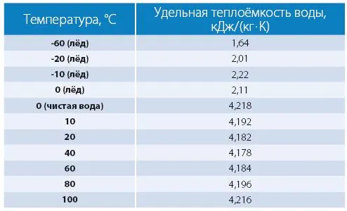 Помимо большой удельной теплоёмкости, вода также имеет большие значения удельной теплоты плавления (333,55 кДж/кг при 0 °C) и парообразования (2250 кДж/кг).
