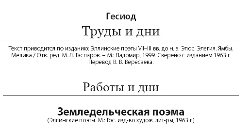В отличие от своего великого собрата по перу, Гомера, прославлявшего героев, Гесиод воспевает ежедневный труд и напоминает о том, как важно ценить отпущенное нам время жизни. Вот полный текст этого произведения, с комментариями указанных ниже людей.