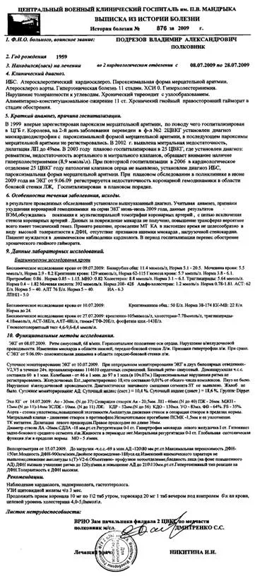 Рис. 7. Выписной эпикриз 2009 года