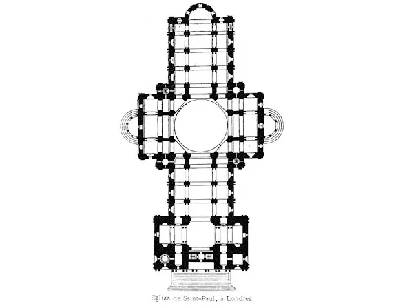 Западный фасад имеет в середине портик, а по обеим сторонам стоят две элегантные башни. Этот портик поддержан двенадцатью сдвоенными колоннами и имеет в середине барельеф, представляющий «Обращение святого Павла». Выше возвышаются три колоссальные статуи – святого Петра, святого Павла и святого Иакова. Со стороны башен помещены четыре евангелиста с их характерными символами. Внутренняя часть здания очень большая, но почти не имеет оформления; простота, которая царит там при входе, поражает. Между тем, купол украшен фресками Жака Тернилла, которые отображают главные эпизоды жизни святого Павла. Длина церкви равна 460 футам; ширина 240 футам в месте перекрестия. Общая высота от земли до верхушки креста, равна 360 футам. И наконец, внутренний диаметр купола равен 107 футам. Тридцать пять лет было достаточно для строительства этой церкви; её строил единственный архитектор – Кристофер Рен, мастера-каменщики, под руководством одного епископа, Генри Комптона, который открыл её. В то время сто тридцать пять лет пытались построить святого Петра в Риме. Там сменилось двенадцать архитекторов и девятнадцать римских пап в течение строительства.