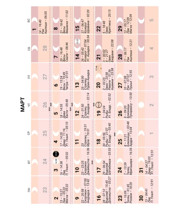 ~ Венера – 1-го в 22:27 переходит в знак Рыб, а 26-го в 02:40 – в знак Овна