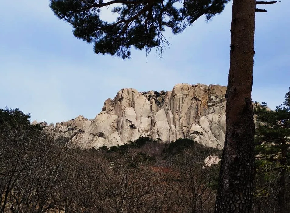 Сораксан – горный парковый комплекс в Южной Корее. От Сеула надо ехать 3 часа на автобусе в Сокчо, от города Сокчо минут 30 езды на автобусе 7-1. Народ там дружелюбный, немного понимают по-английски, язык жестов отлично понимают. И чистота поражает. Даже по трассе, по обочинам и на полях нет мусора. Русским бы поучиться. Горы там высокие и необычные, но одна, где находится храм, отличается по цвету от окружающих гор: