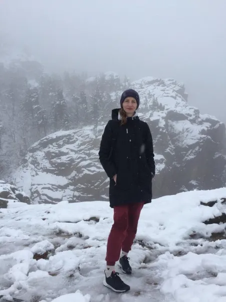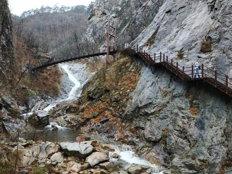 В Сораксане мы вновь встретились с зимой. Пошёл дождь, а на вершине гор лежал снег. Забравшись на гору на подъёмнике, увидели скалы в виде морды (она за спиной):