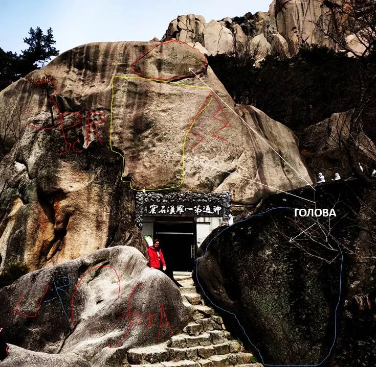 У храма расположен огромный камень с надписями:
