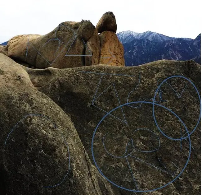 Здесь, верхний камень напоминает камень на вершине мегалита Сторожевого города Приморья. Знаков, изображений так много, то, чтобы не показать месиво, покажу несколько обводок на камнях: