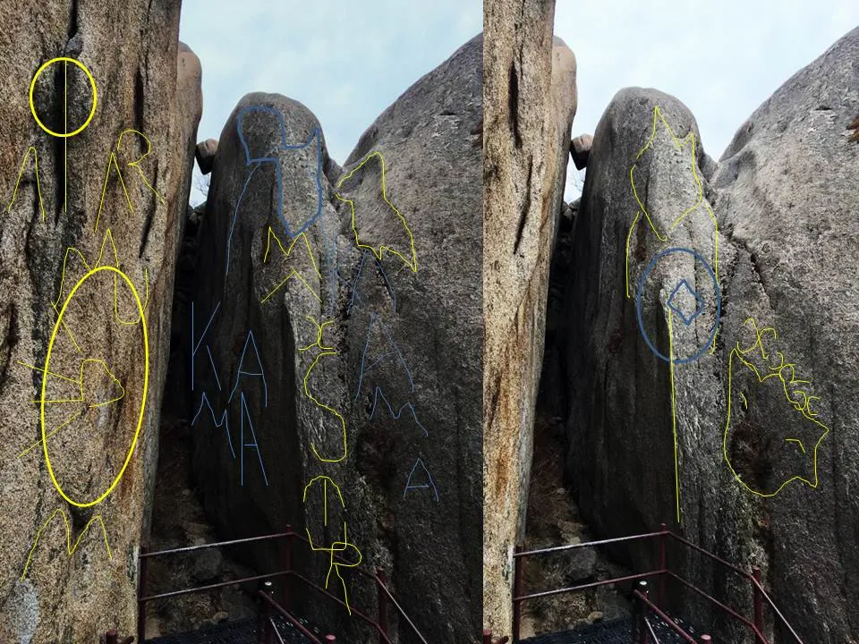 На этих камнях есть лица, слова «храм Тиры» (Тира – древнегреческий город на правом берегу лимана Днестра, Википедия), круги, имеющие космический смысл: