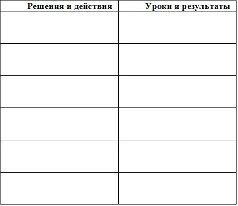 Во вторую графу впишите, чему научил каждый из указанных Вами в первом столбце поступков и решений.