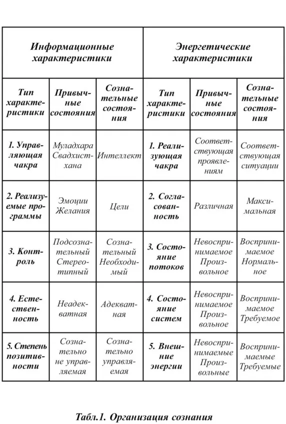 Энергетические характеристики – определяются работой систем сознания и энергетики. 1. Реализующая чакра – выполняет команды управляющей по вызову основных проявлений. 2. Согласованность