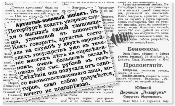 Артистка – военный шпион. «Орган» №36, 1911 стр 3.