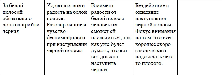 Так события в жизни и будут складываться. Во-первых, человек будет платить кредиты ровно 4 года, так как не позволяет в своих мыслях произойти другому развитию событий. Во-вторых, он будет платить их с трудом, то есть возникнут сложности с нахождением денег на оплату кредитов, так как он думает и чувствует, что кредиты угнетают, и в его фокус внимания даже не попадают новые возможности для изменения ситуации.