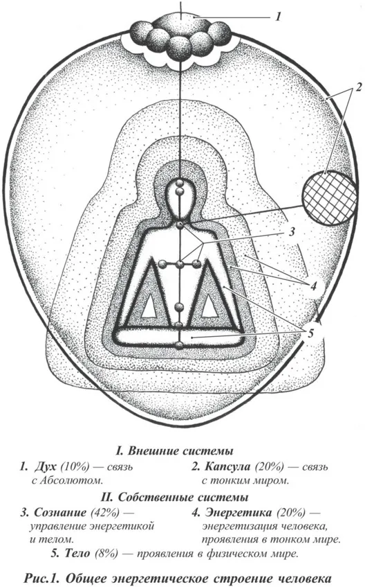 Внешние системы – представлены в виде капсулы и духа, они даются человеку Кармой (ее иерархией) по соответствующим духовным законам на основе его уровня, статусов и других характеристик. При этом капсула и дух являются непосредственными покровителями человека в тонком мире, а при осознанном входе в этот мир и его прямыми учителями, наиболее заинтересованными в его развитии.