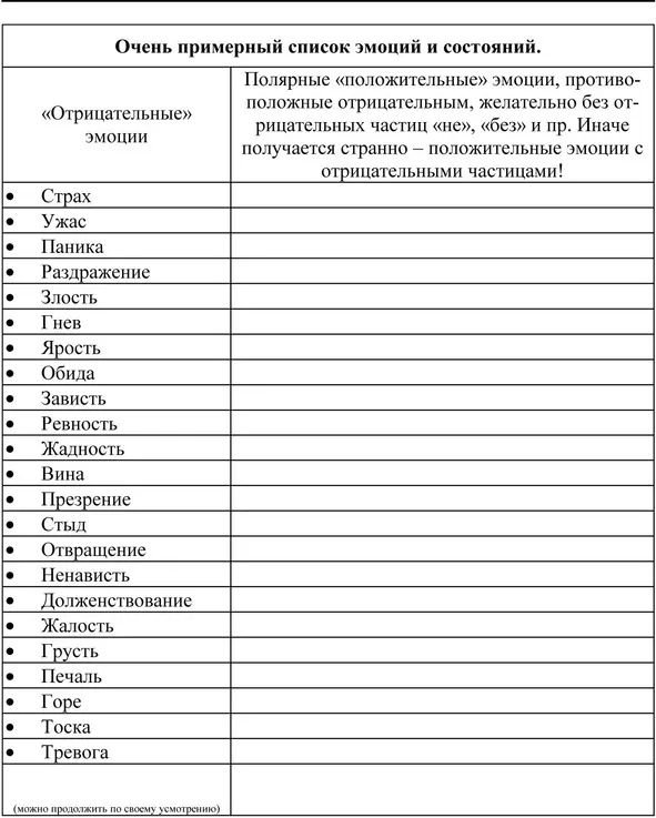 Есть еще «троянский конь» в этом упражнении. Человеку, который в течение сорока пяти минут вызвал у себя всю свою гамму эмоций, сложно будет после этого утверждать, что он за них не отвечает!!!
