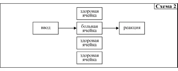 Согласно этой схеме, его болезнь: «Искаженная реакция на внешние раздражители в результате ошибочной обработки информации». Я бы назвал модель этого парня кибернетической. С моей точки зрения, было бы логично выяснить способы лечения в рамках этой модели. Что я и сделал: