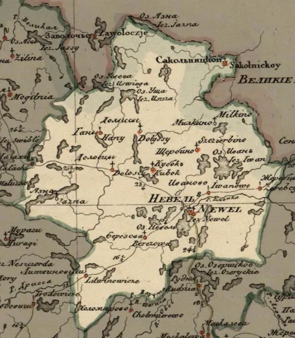 В «Ведомости о расколах разных сословий и сект, находящихся в Невельском уезде за 1841 г.» перечисляются три старообрядческих согласия, существовавших на территории уезда: «1-я секта безпоповщина мужиковщина молящаяся за царя и приемлющая браки» (1001 душа мужского пола и 1049 – женского), «2-я секта поповщина молящаяся за царя и приемлющая браки» (194 м.п. и 185 ж.п.) и «3-я секта безпоповщина молящаяся за царя отвергающая браки» (516 м.п. и 488 ж.п.). Всего по Невельскому уезду числится 3433 старообрядца различных согласий.56 В 1846 г. эта цифра составляла уже 3770 душ57.