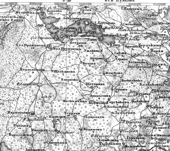 Язно-Богородицкий приход (Рыкшинская волость). Фрагмент карты Невельского уезда 1867 г.