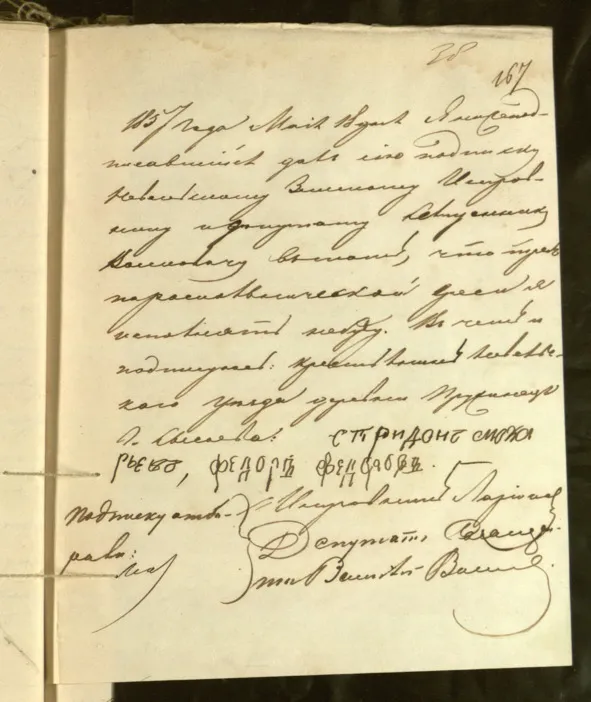 Подписи пружинских наставников Спиридона Макаровича и Федора Федоровича (НИАБ. Ф. 1416. Оп. 1. Д. 1266. Л. 167).