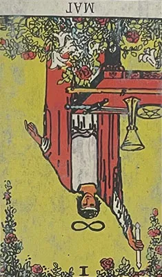 Здесь карта Мага пусть и перевернутого, но все же Мага означает «справишься, решишь, как сможешь». Еще не директор, но уже заместитель. Возможно, ты часто в себе сомневаешься, а это сильно мешает и в карьере, и в жизни вообще. Пока ты решаешься, другой, понаглее, лезет вперед, хотя ты знаешь, что можешь лучше, чем он.