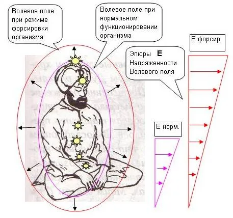 Важно! Если йогин, не использует свою Силу Воли, как субстанцию, постоянно, то она, как и все прочее, застывшее, становится неспособной проходить через тело человека, его Терминал. По-другому: если Кривизна Пространства вокруг тела человека перестанет уплотняться, а значит, будет разряжаться, то в Терминале, теле йогина, произойдет застой энергий, тело и его Воля будут атрофироваться, а затем тело умрет. Чтобы избежать такой смерти, необходимо Волю постоянно тренировать, то есть использовать, нагружать, нужно проявлять Волевое Усилие в работе над собой. И это возможно при постоянном перекачивании через свое тело Кривизну Пространства. Это означает ежедневное нагрузка, тренировка Волеизъявления йогина, проявление Силы Намерения. Волю необходимо заставлять трудиться. Что это означает?