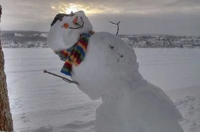 И я теперь стою (живу) такой: комья (тело) всё ещё крепки и сильны, но «поза жизни» – склонённый на один бок снеговик!