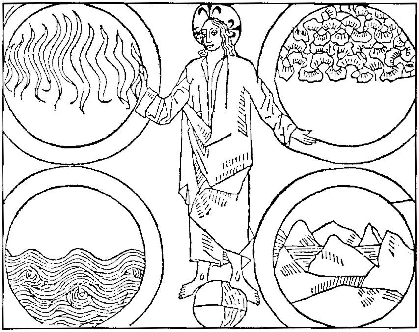 Рис. 8 Христос – в образе Антропоса, стоящего на земном шаре, по бокам находятся четыре элемента.