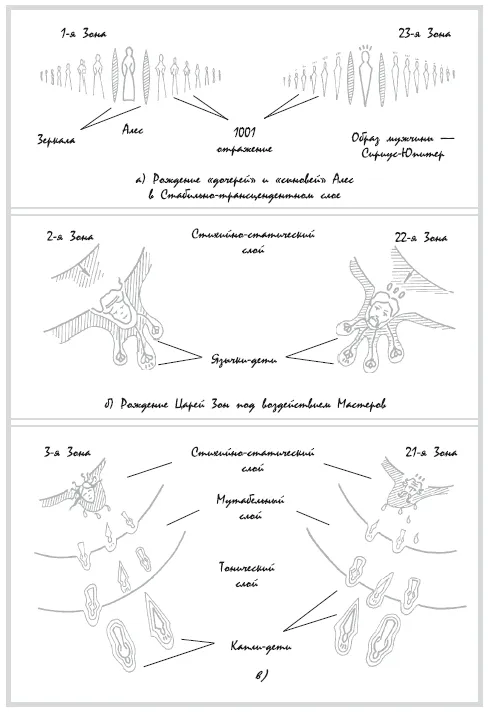 Итак, в результате работы Первого Мастера выделился первый слой Алес – ее часть, обладающая определенным Качеством и своей задачей. Создание этого слоя дало возможность ограничить Монаду оболочкой, определить точно пространственно-временное положение, создать полюса и «натянуть меридианы». Тем самым у Алес появилась возможность определения собственного стабильного «Я», она смогла самоорганизоваться, обрести самобытность. Появление Стабильно-трансцендентного слоя, его наличие, фиксирует становление Земли как Целого Космического Существа, способного к дальнейшему самопознанию.