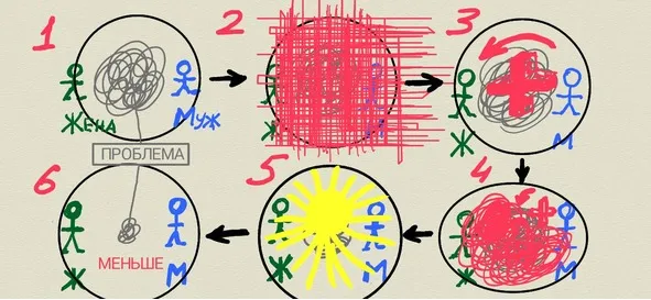 Сетку, крест, солнышко применяем многократно, до тех пор, пока наша проблема с мужем не превратиться в точку, пока ничего уже между нами рисоваться не будет.