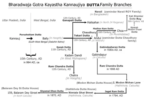 Шри Пурушоттама Датта был одним из числа пяти каястх, пришедших в Гауду по приглашению царя Адисуры. Эти пятеро были Макаранда Гхош, Дашаратха Васу, Калидас Митра, Дашаратха Гуха и Пурушоттама Датта. Семья Пурушоттамы Датты осела в Балиграме. Позже некий представитель его рода осел в Андулаграме и стал известен как глава всего сообщества каястх5.