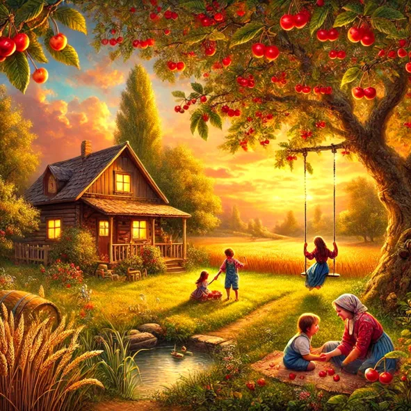 Бабушкин дом был сердцем нашей семьи. Он всегда пах чем-то тёплым и уютным: свежим хлебом, который бабушка пекла каждую субботу, и ароматным вишнёвым компотом, в котором ягоды, словно маленькие рубины, плавали в густой, сладкой воде. В саду, окружённом кустами малины и крыжовника, росли высокие вишни. Мы с сестрой часто собирали с них ягоды, превращая этот процесс в настоящее приключение.