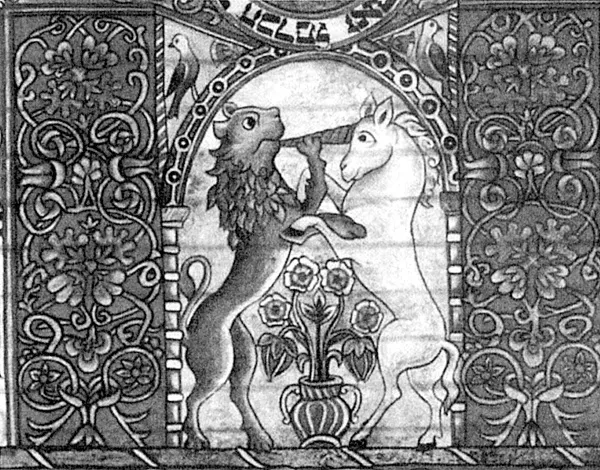 Роспись с изображением льва и единорога. Потолок синагоги в Ходорове. Польша, примерно XVI в.