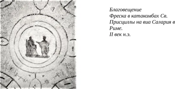 Изображение Благовещения как одного из важнейших христианских сюжетов появилось достаточно давно.17 Считается, что самое первое известное изображение Благовещения было нарисовано в катакомбах Присциллы (Priscilla) в Риме (II—III век).18
