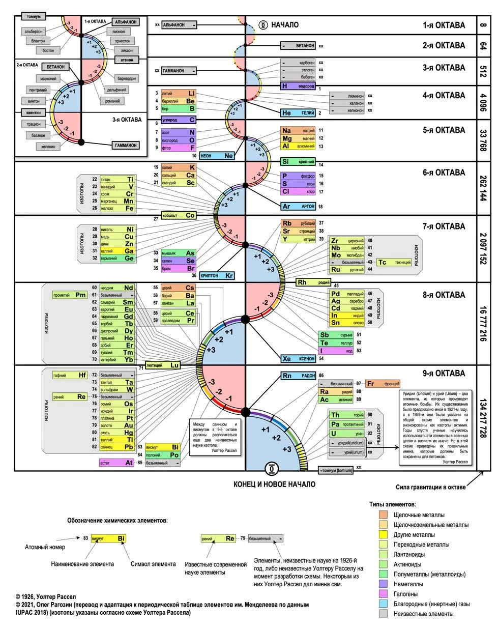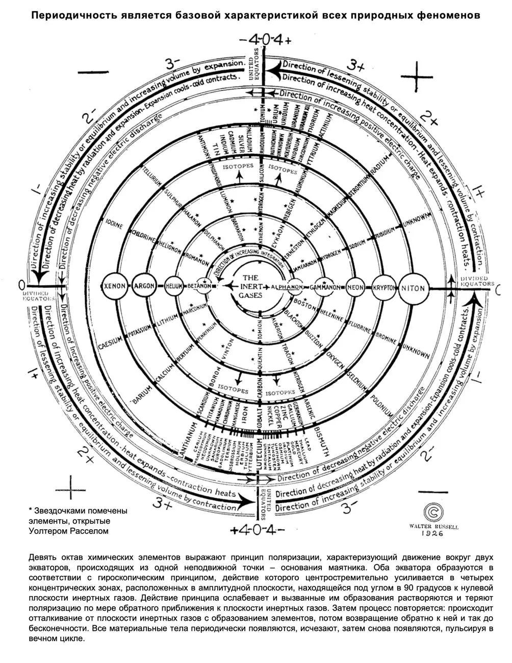 Рис. 70. Вторая из двух законченных периодических таблиц химических элементов, которые Уолтер Рассел дал научному миру в 1926 г.6162