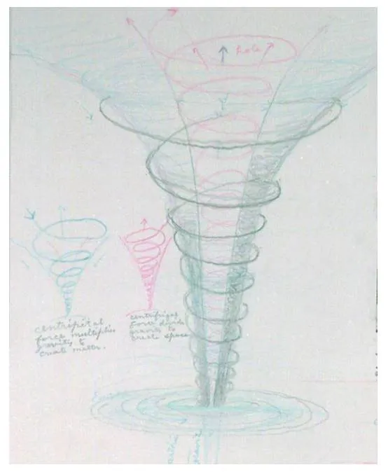Циклоны и возникающие в них торнадо являются иллюстрацией процесса образования движения и материи (что есть одно и то же) в результате воздействия электрического давления, разделяющего исходное сбалансированное притяжение на два взаимно-обратных потока. © 1955, Уолтер Рассел.23