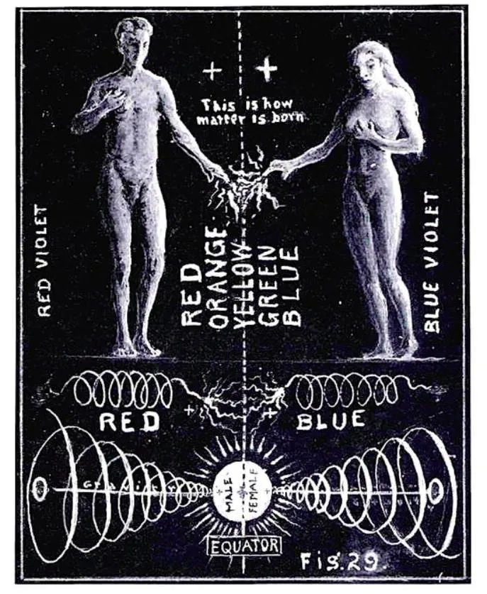 Природа создает двуполые тела путем поляризации исходного равновесного состояния. Деполяризуя эти тела, природа их уничтожает. В рекреационных циклах природа то создает, то уничтожает все тела, постоянно их повторяя. © 1957, Уолтер и Лао Рассел, «Atomic Suicide»24