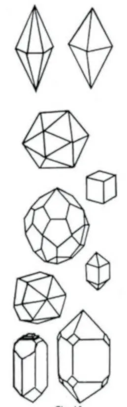 В природе не может быть других форм, кроме кубов, сфер или их частей. Сложные тела на самом деле представляют собой набор материальных сфер, окруженный набором пространственных кубов, обоюдно существующих в октавных волнах. Все кристаллы – это кубические секции.51 Их форма определяется положением в октавной волне (рис. 15).
