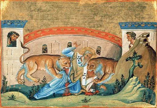 Игнатий Антиохийский. Книжная миниатюра из Менология Василия II. Ок. 1000 г. Византия