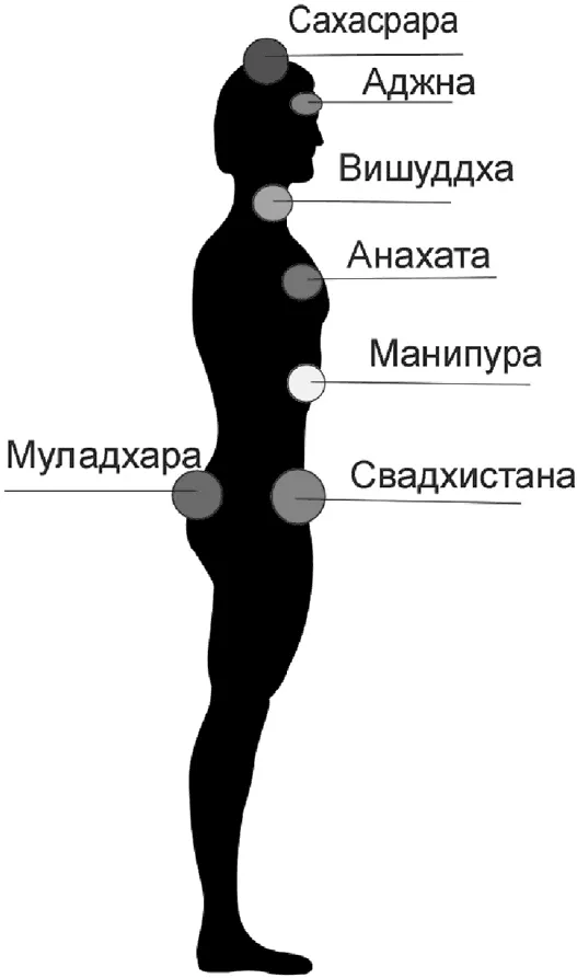 Согласно индийской традиции, на человеческом теле есть семь энергетических центров (чакр), которые расположены по средней оси тела и имеют точную локализацию на поверхности тела.