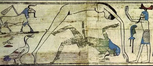 Богиня Нут сверху и бог земли Геб (снизу) творят богов