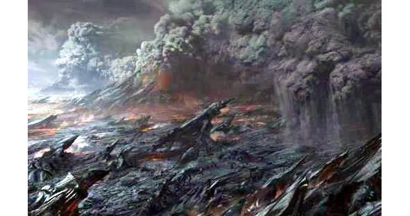 Потрясение от столкновения привело к сильным землетрясениям и извержениям вулканов. Извергаясь, они начали выбрасывать раскаленную лаву по всей окружающей местности, наполняя воздух пылью и ядовитыми веществами.