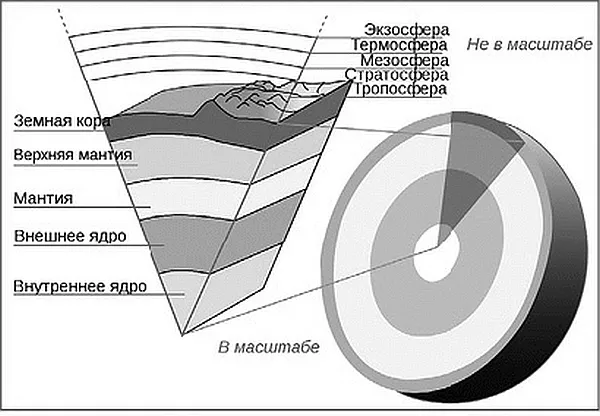«Пузырь» Земли, состоящий из слоев тропосферы, стратосферы, мезосферы и пр., представляет собой слоеный «пирог», как и ее внутренние слои (рис. 22).