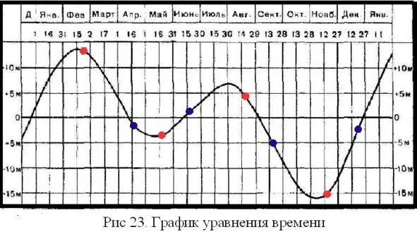 С чем может быть связана эта особенность событий 17,18, 19 числа в физическом плане? Возможно, влияет уравнение времени по изменению длины суток в течение года. Земля за год при вращении вокруг своей оси два раза замедляется и два раза ускоряется. График уравнения времени по книге Н. Я. Кондратьев «Астрономия в авиации», 1952 г. приведен в иллюстрации к данной книге (см. ниже).